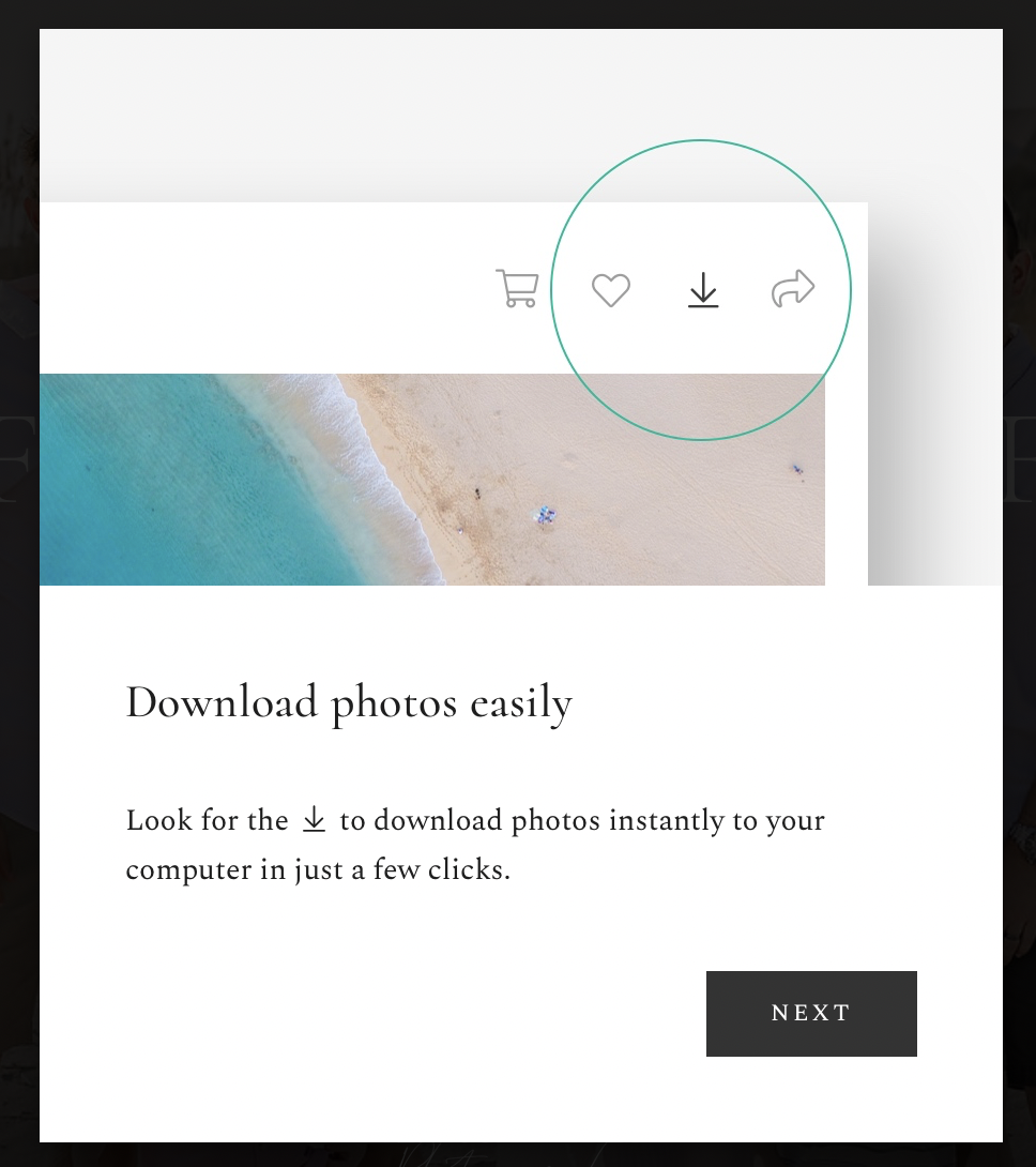 Once you’ve logged in, you will immediately see 3 pop-up screens with instructions on how to download, share, and favorite images. Incase you closed out too soon and missed reading the pop-ups below are instructions for downloading and favoriting.